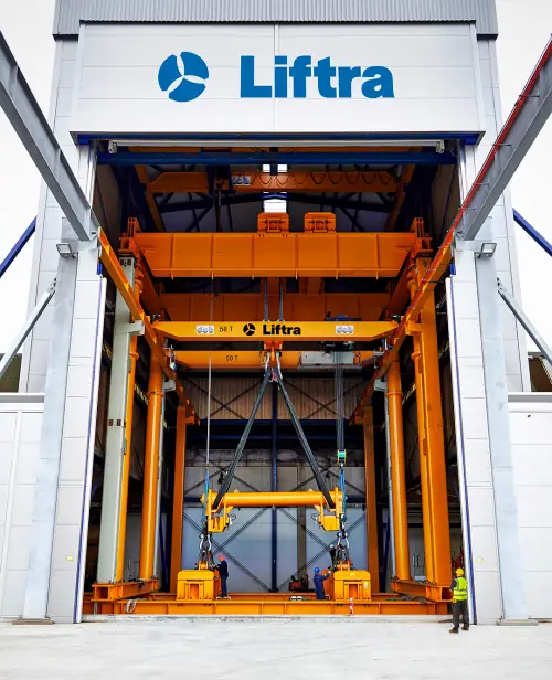 Liftra’s test facility has one of the largest test benches in Europe for load testing of lifting yokes, crane blocks or other heavy lifting and transport equipment.